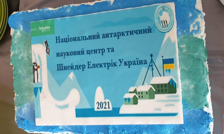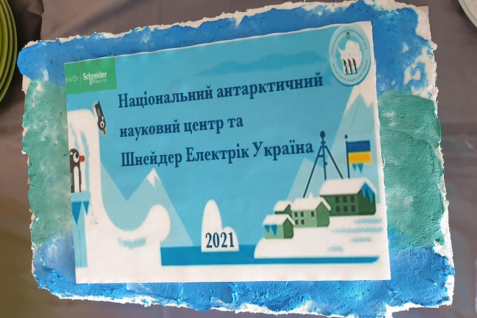 Підписання Меморандуму завершилося приємним сюрпризом: на полярників та усіх гостей чекав надзвичайний торт з зображенням станції.