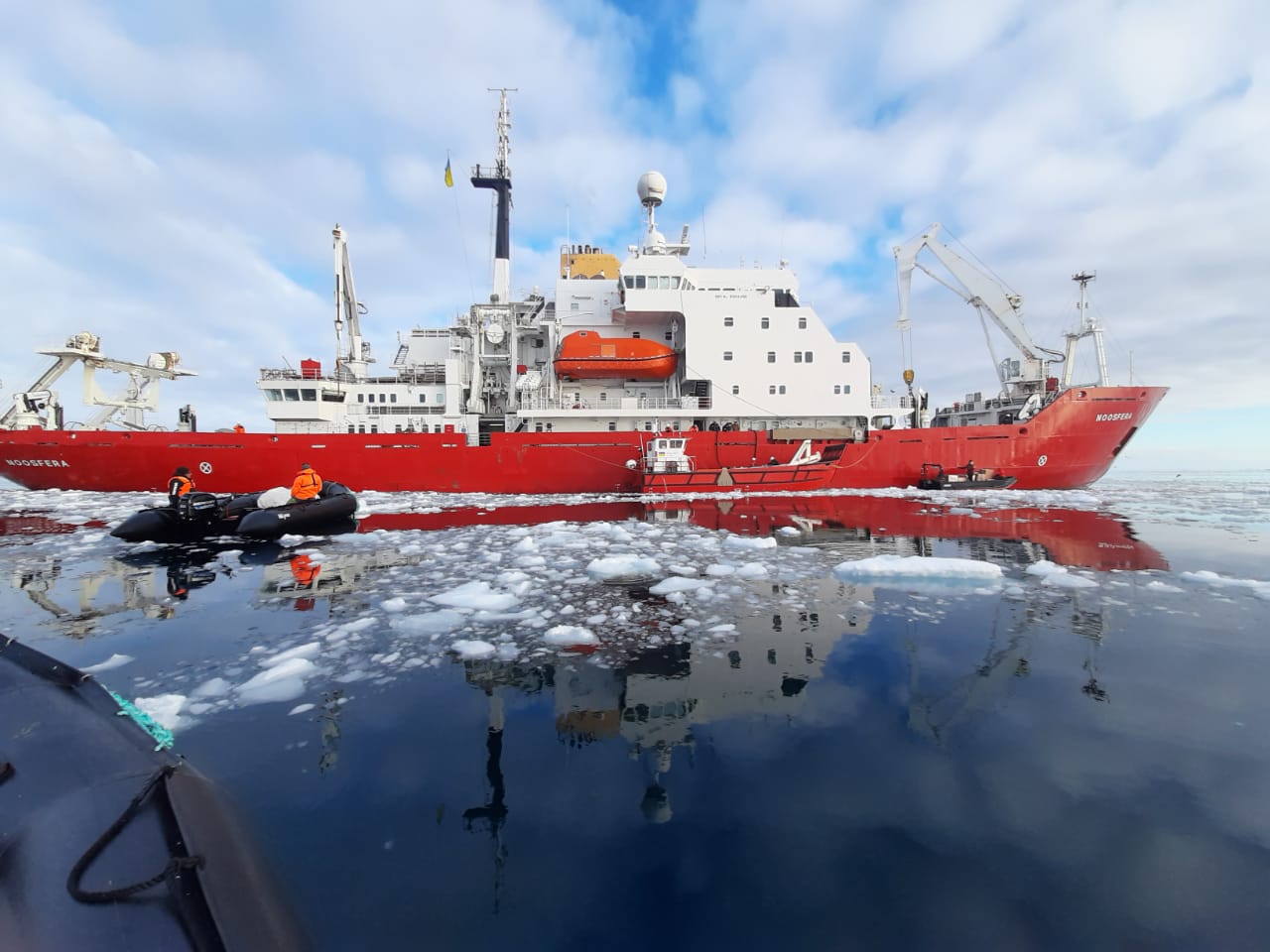 ● виконати низку геологічних, океанографічних і метеорологічних досліджень. Так, у межах міжнародного проєкту OCEAN:ICE українські науковці вперше запустила 6 аргобуїв, які вже активно збирають інформацію про течії в Південному океані. Також наші вчені вперше провели одночасне радіозондування атмосфери з «Вернадського» та «Ноосфери», щоб більше дізнатися про процеси утворення хмар та опадів у нашому районі та їхній вплив на океан, морський лід і танення льодовиків.