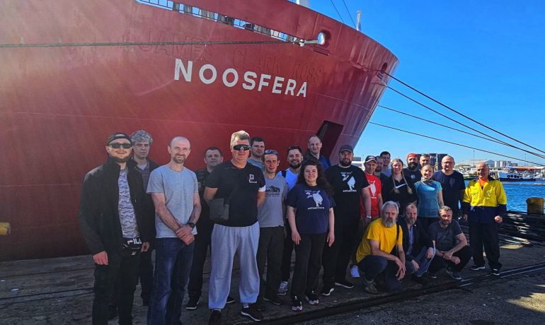 “Усі ми мріємо та докладаємо максимальних зусиль, щоб настав той час, коли Україна відзначатиме Перемогу, а ми зустрічатимемо нашу чудову «Ноосферу» в Одесі. Але нині можемо пишатися тим, що флагман українського науково-дослідного флоту вже другий рік поспіль успішно виконує антарктичну місію. Не зупиняємося попри всі спроби ворога нас знищити”, – зазначив директор НАНЦ Євген Дикий.