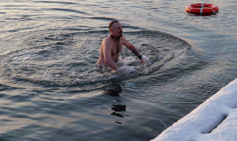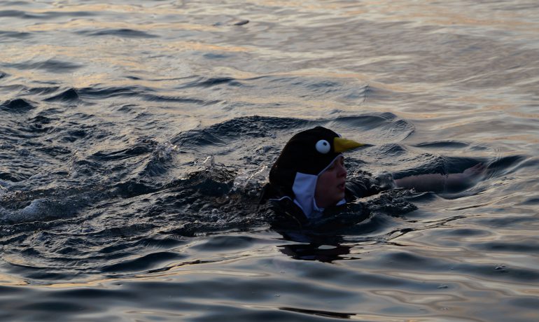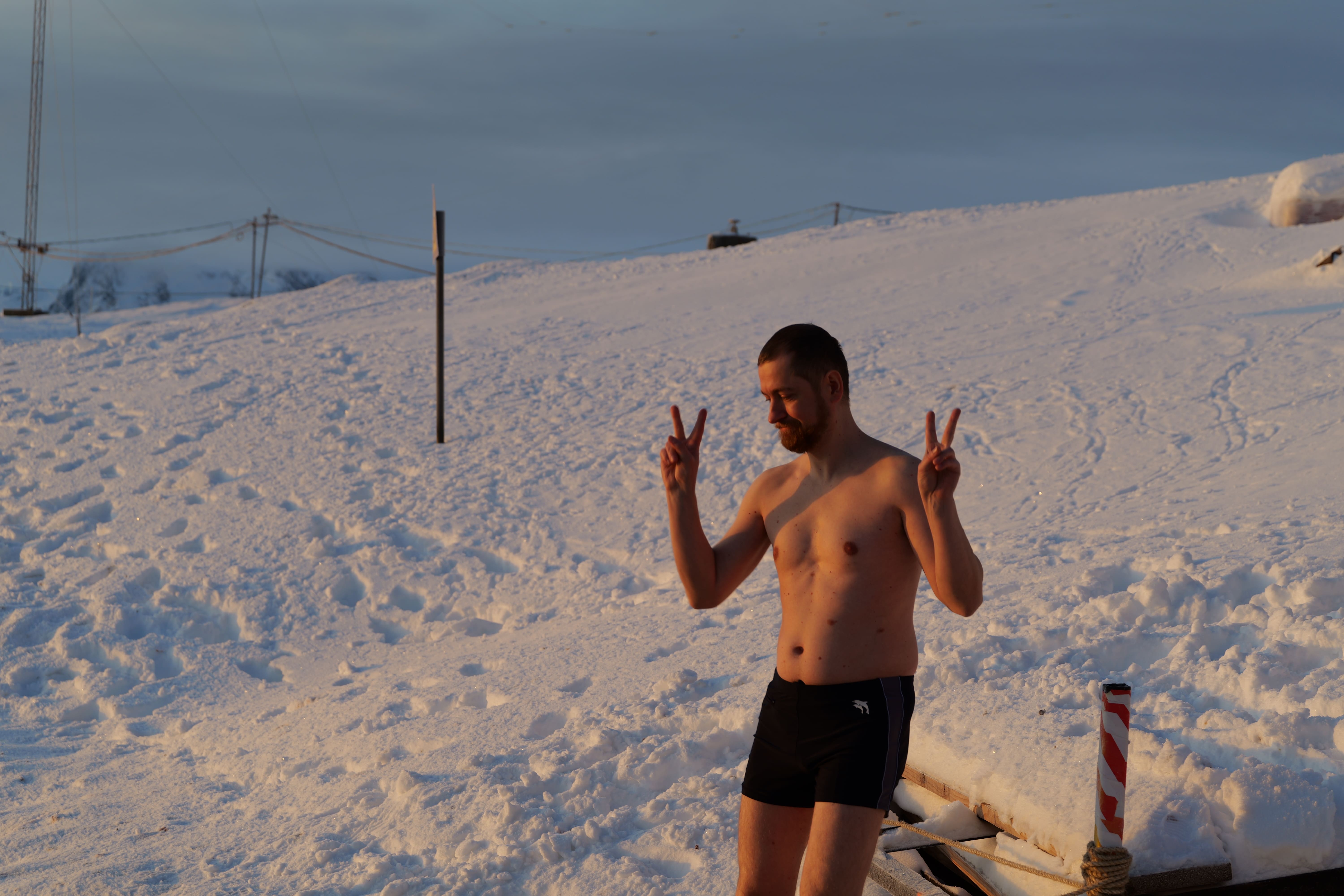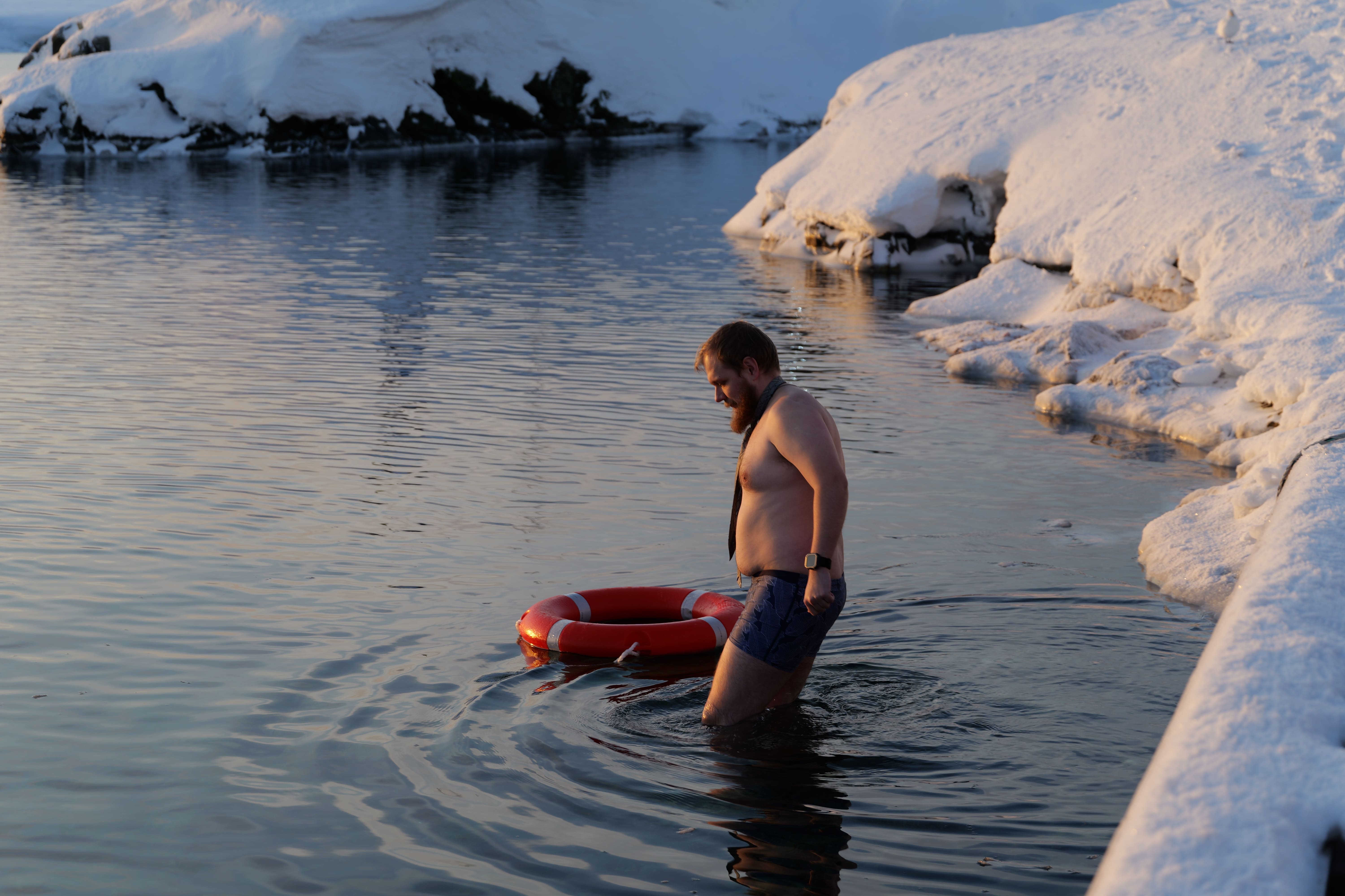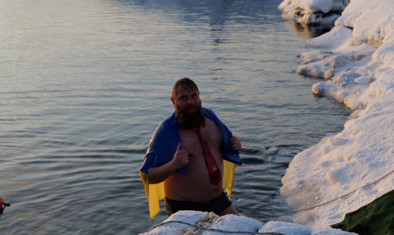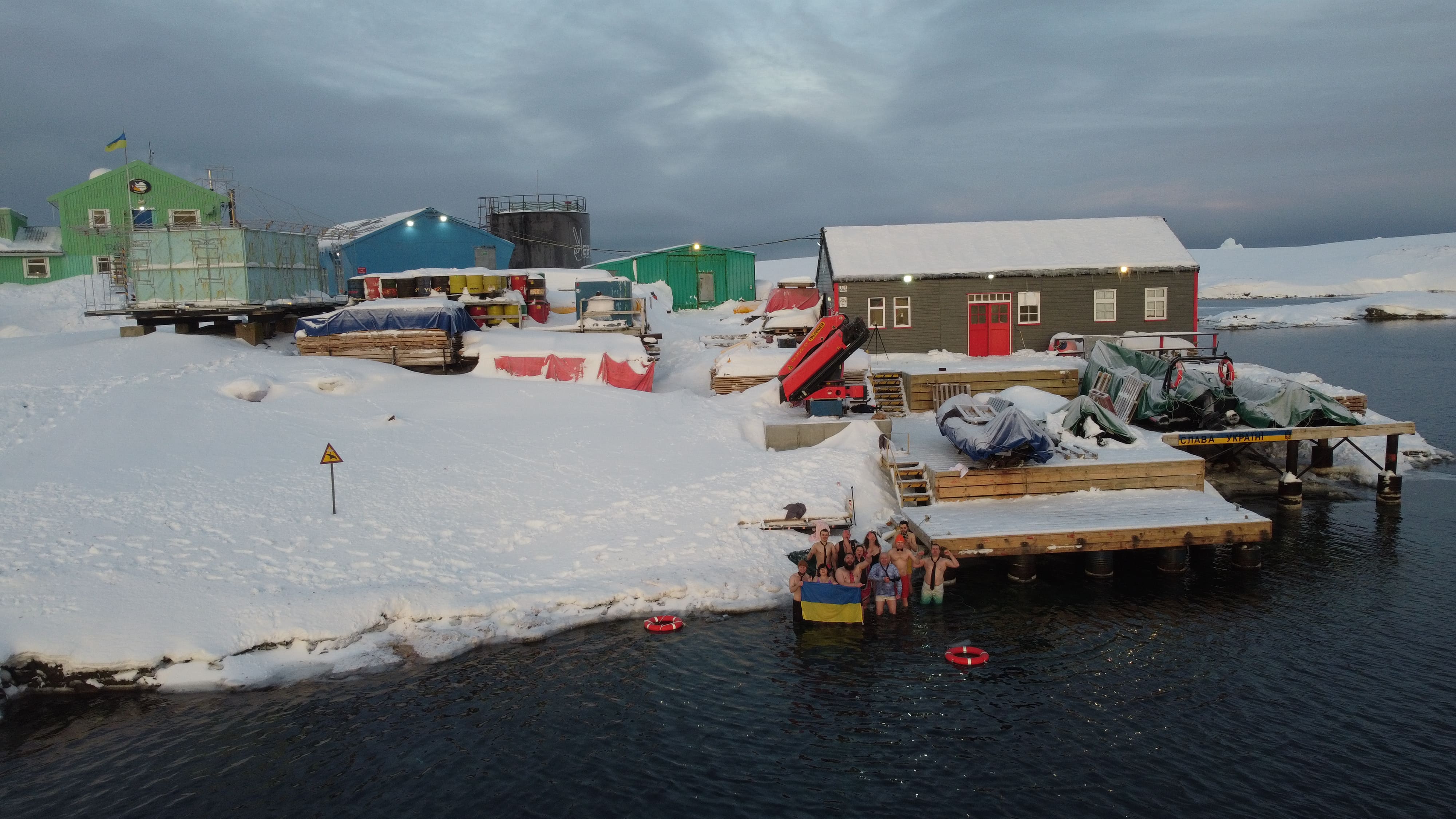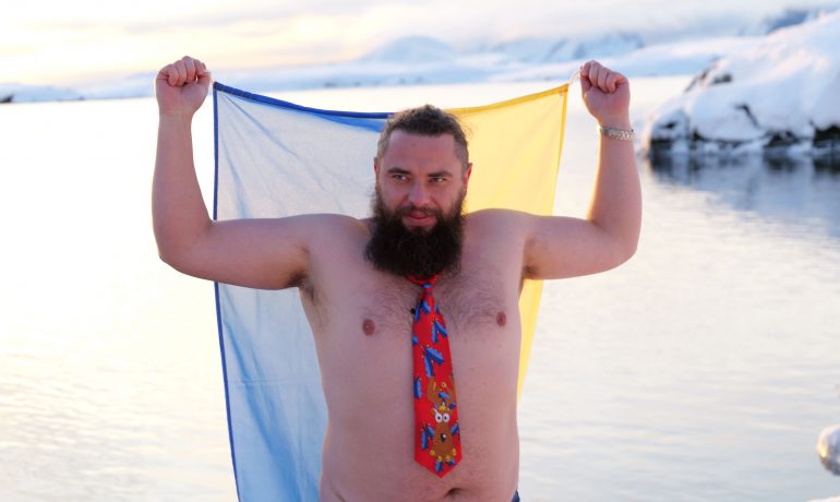 Головною подією Мідвінтера традиційно є купання в Південному океані. Його температура зараз доходить до -2 С°. Хоч погода й видалася на рідкість тихою та безвітряною, а небо навіть «показувало» перламутрові хмари, проте через високу вологість на дворі відчувалося досить холодно.