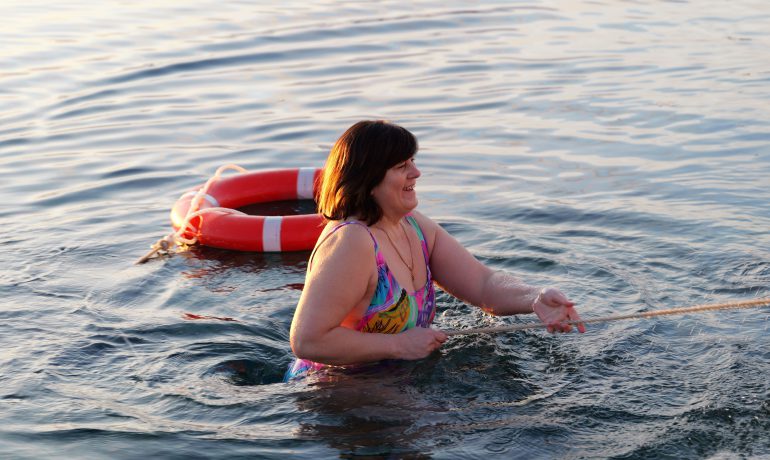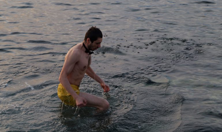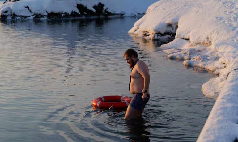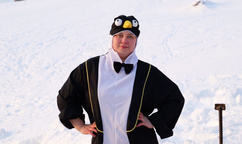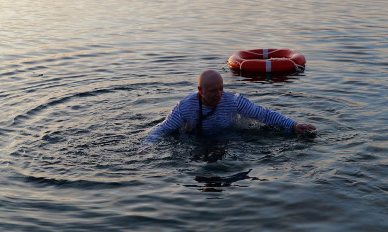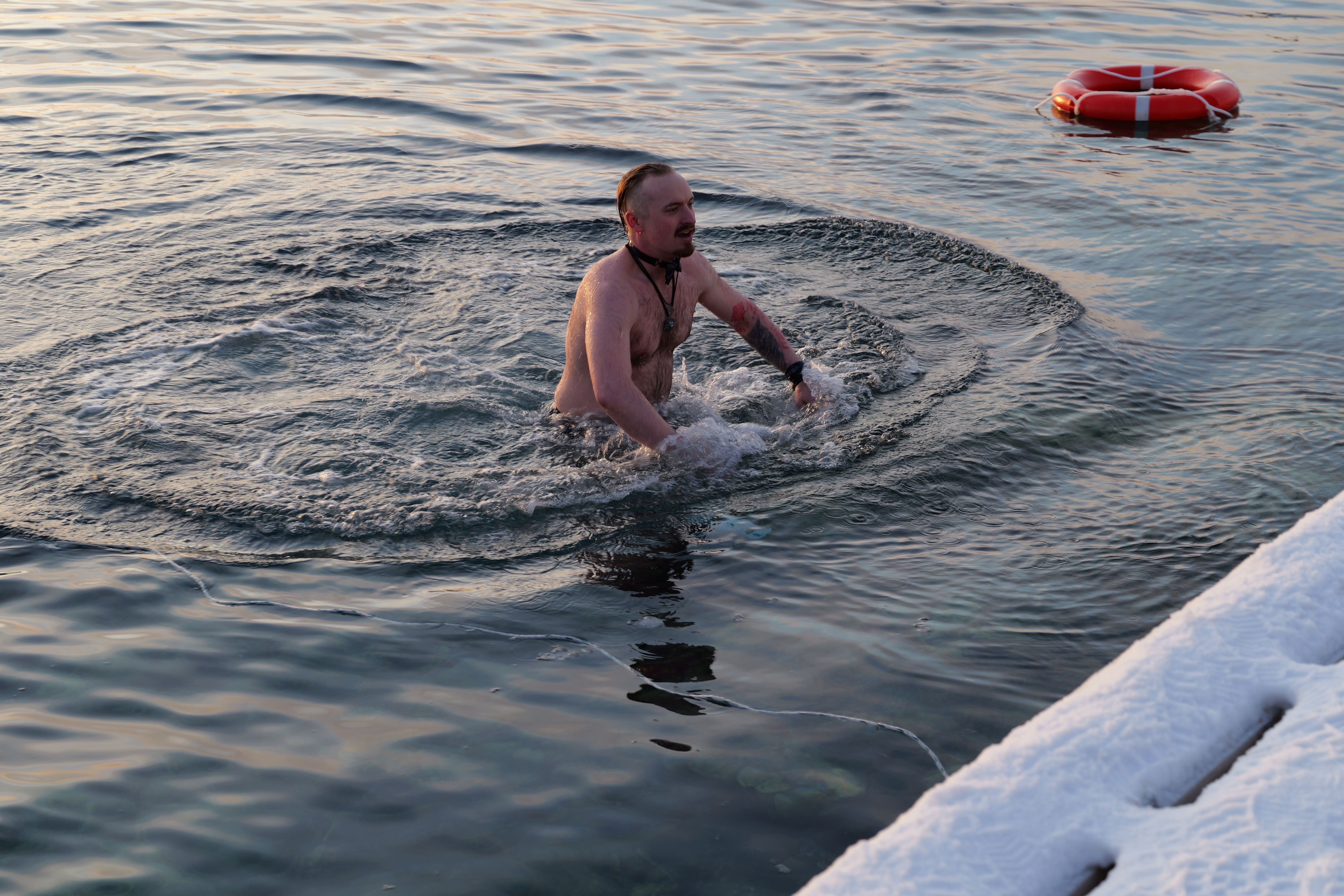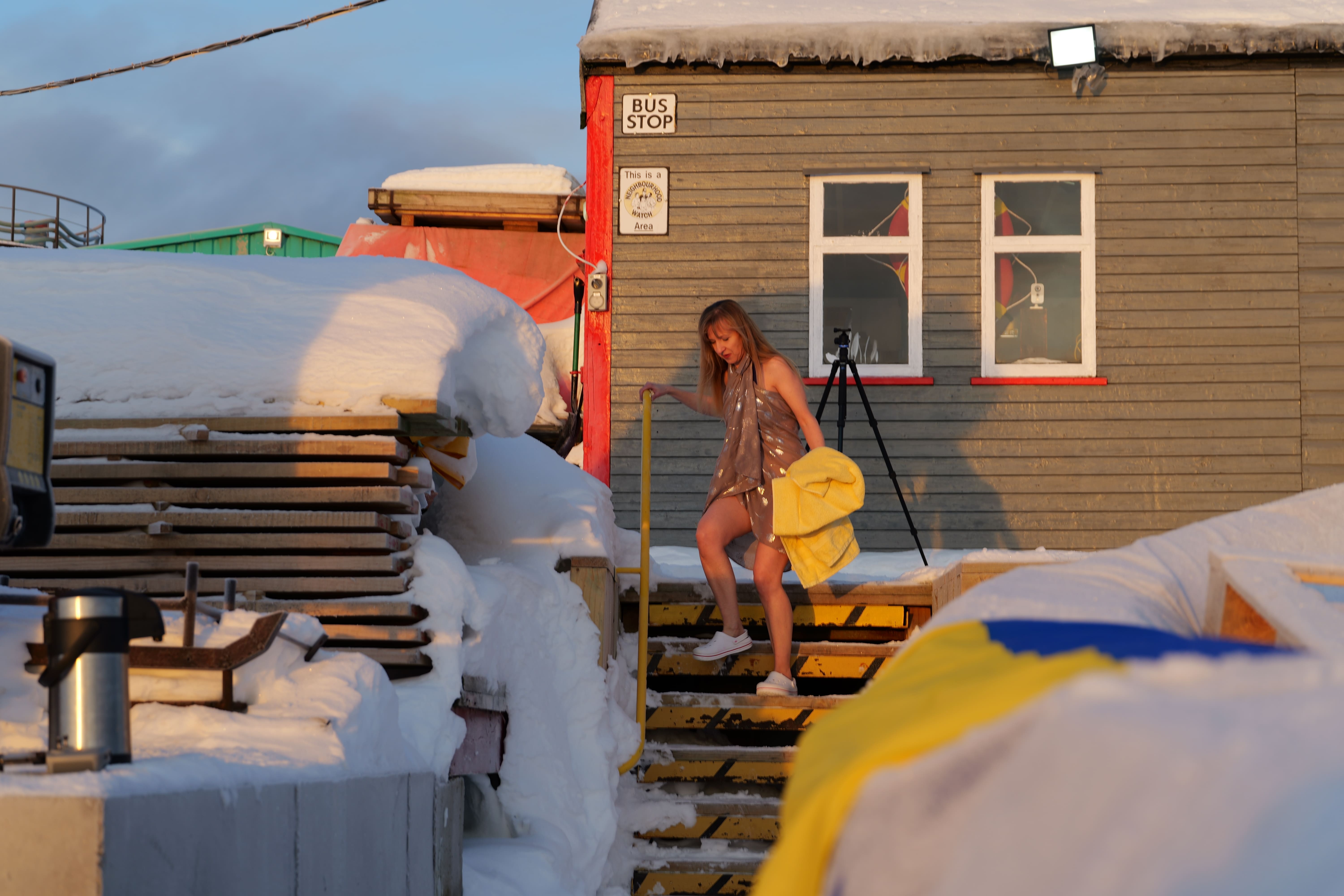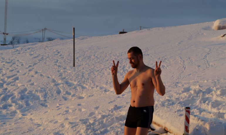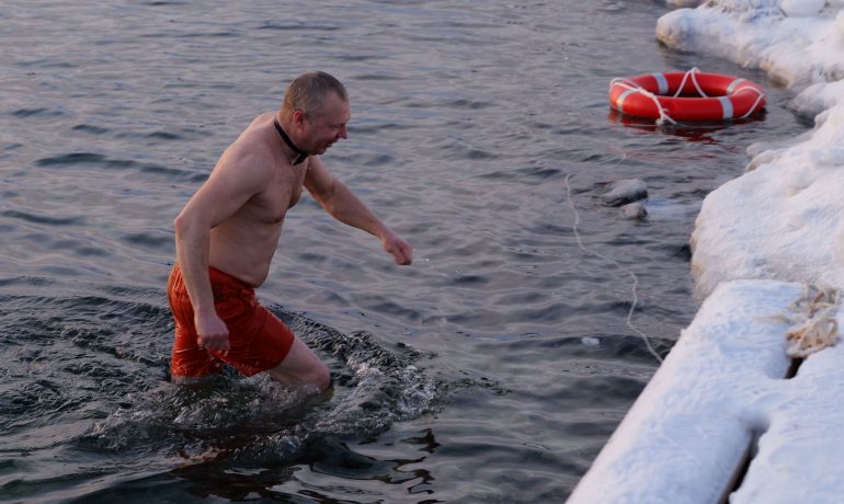 Головною подією Мідвінтера традиційно є купання в Південному океані. Його температура зараз доходить до -2 С°. Хоч погода й видалася на рідкість тихою та безвітряною, а небо навіть «показувало» перламутрові хмари, проте через високу вологість на дворі відчувалося досить холодно.