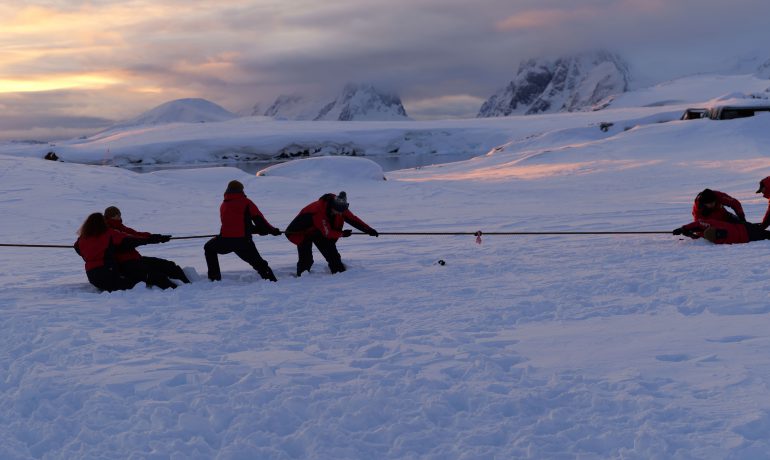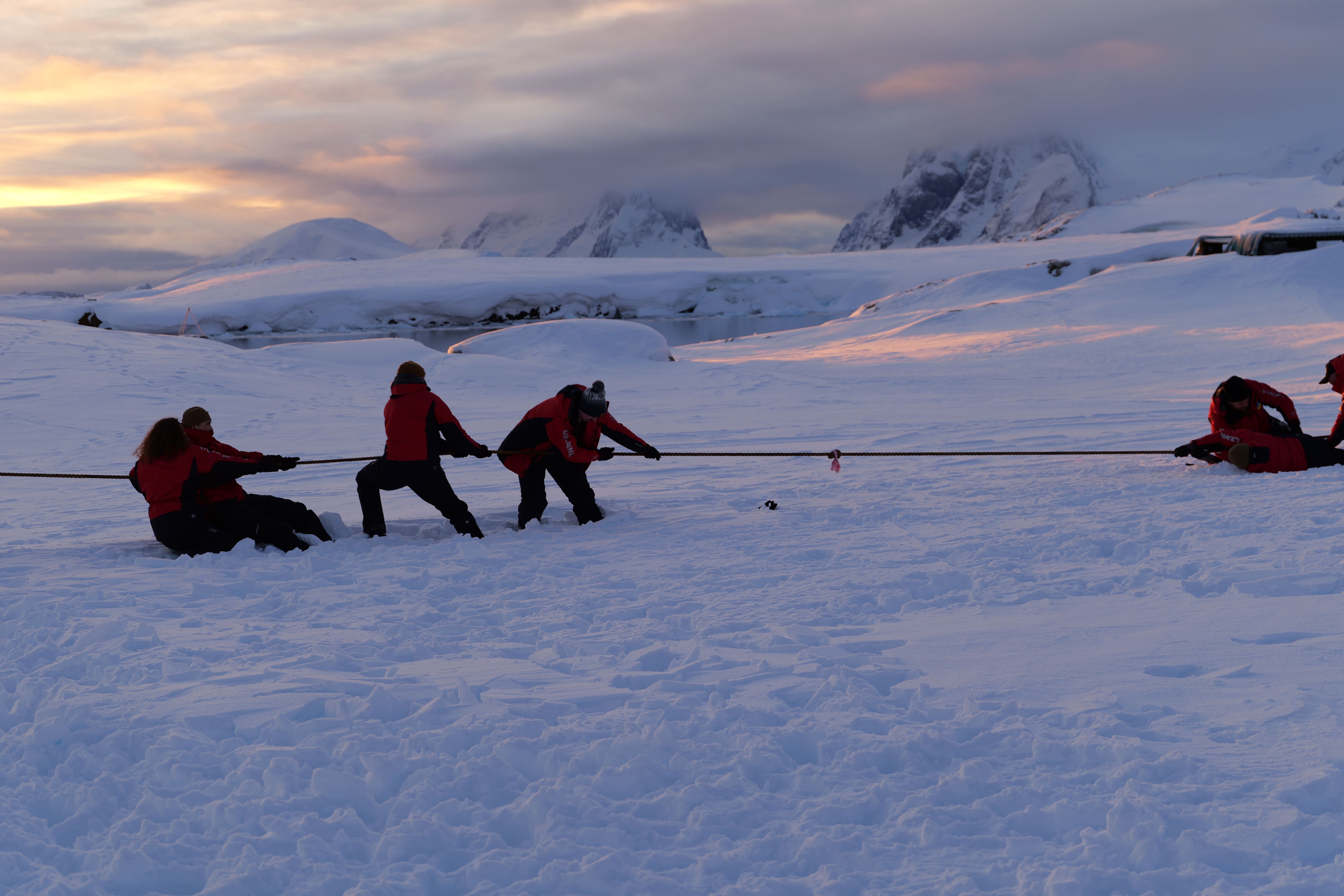 Відтак тривали спортивні змагання: ходьба драбиною, перетягування каната й навіть стрільба з німецької пневматичної гвинтівки. Нескладно здогадатися, кого наші полярники уявляли як ціль.