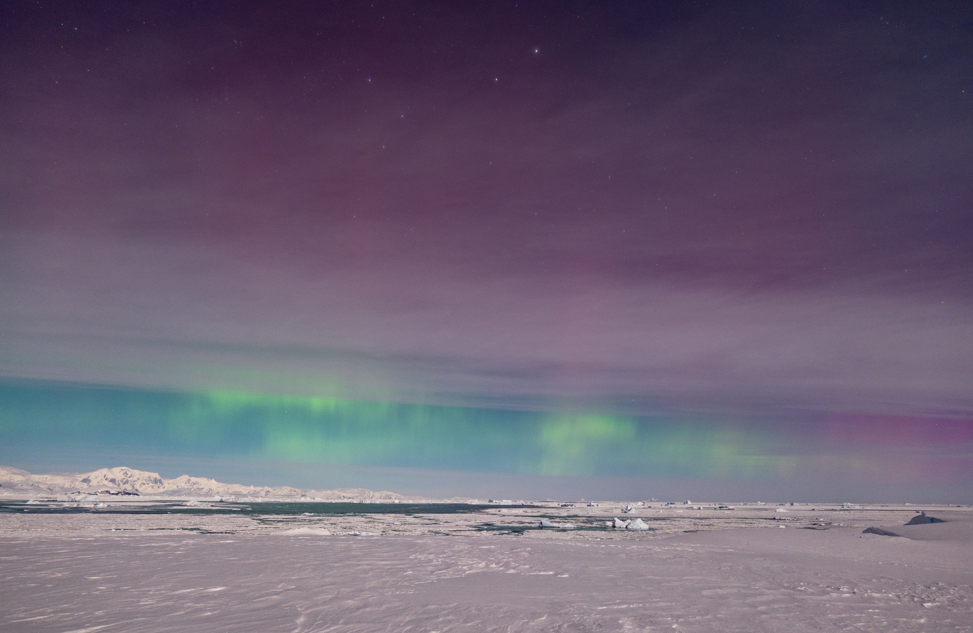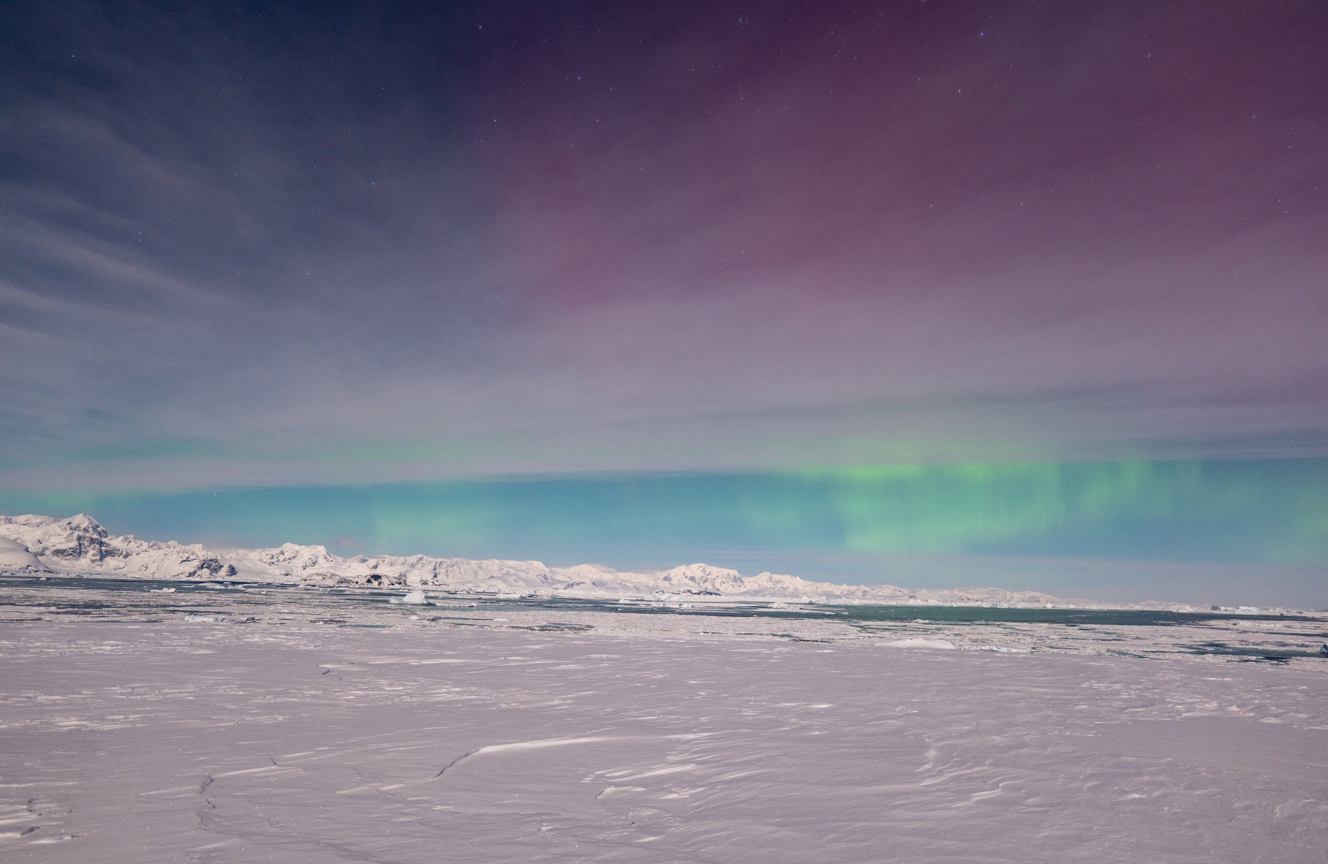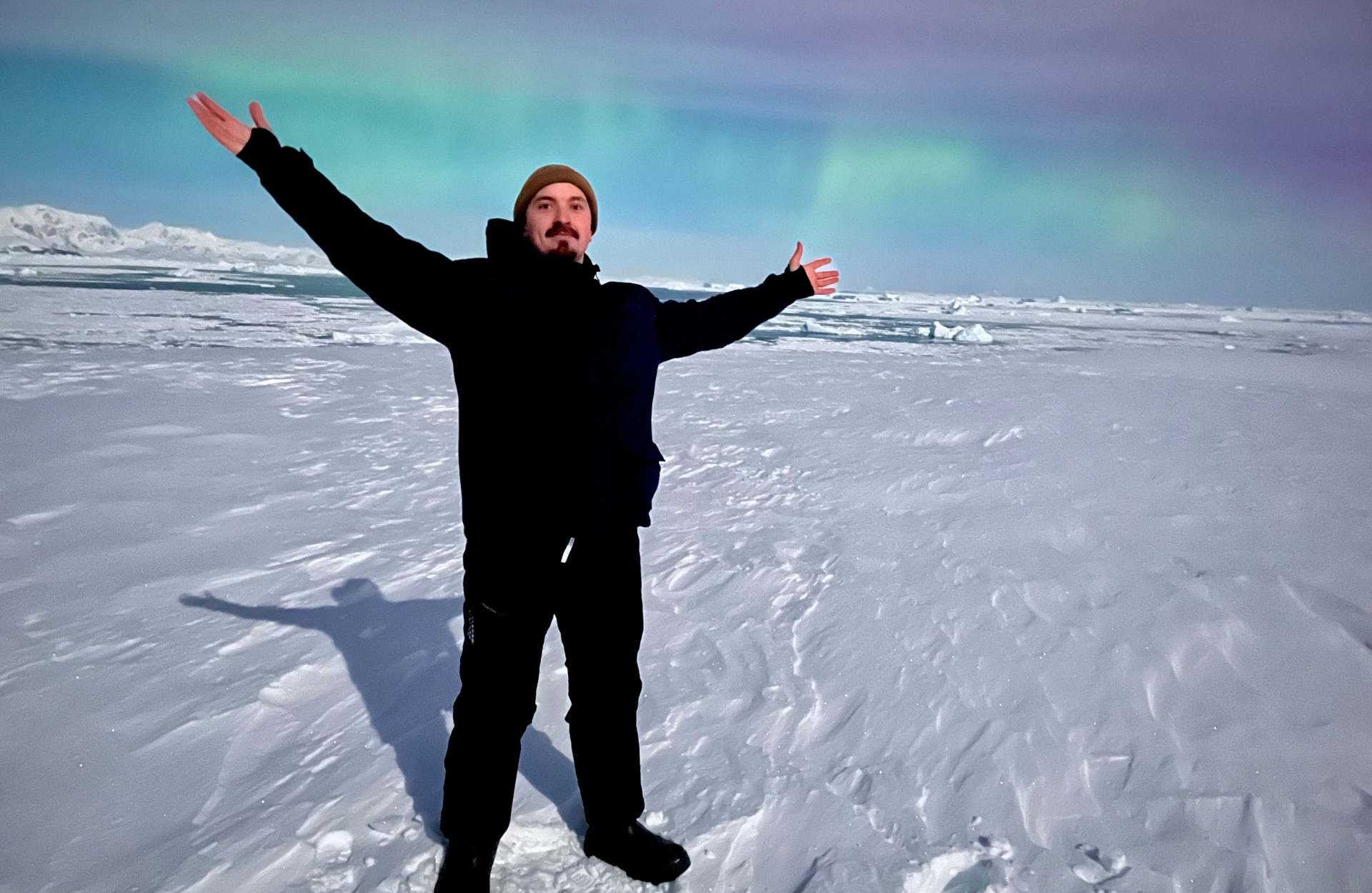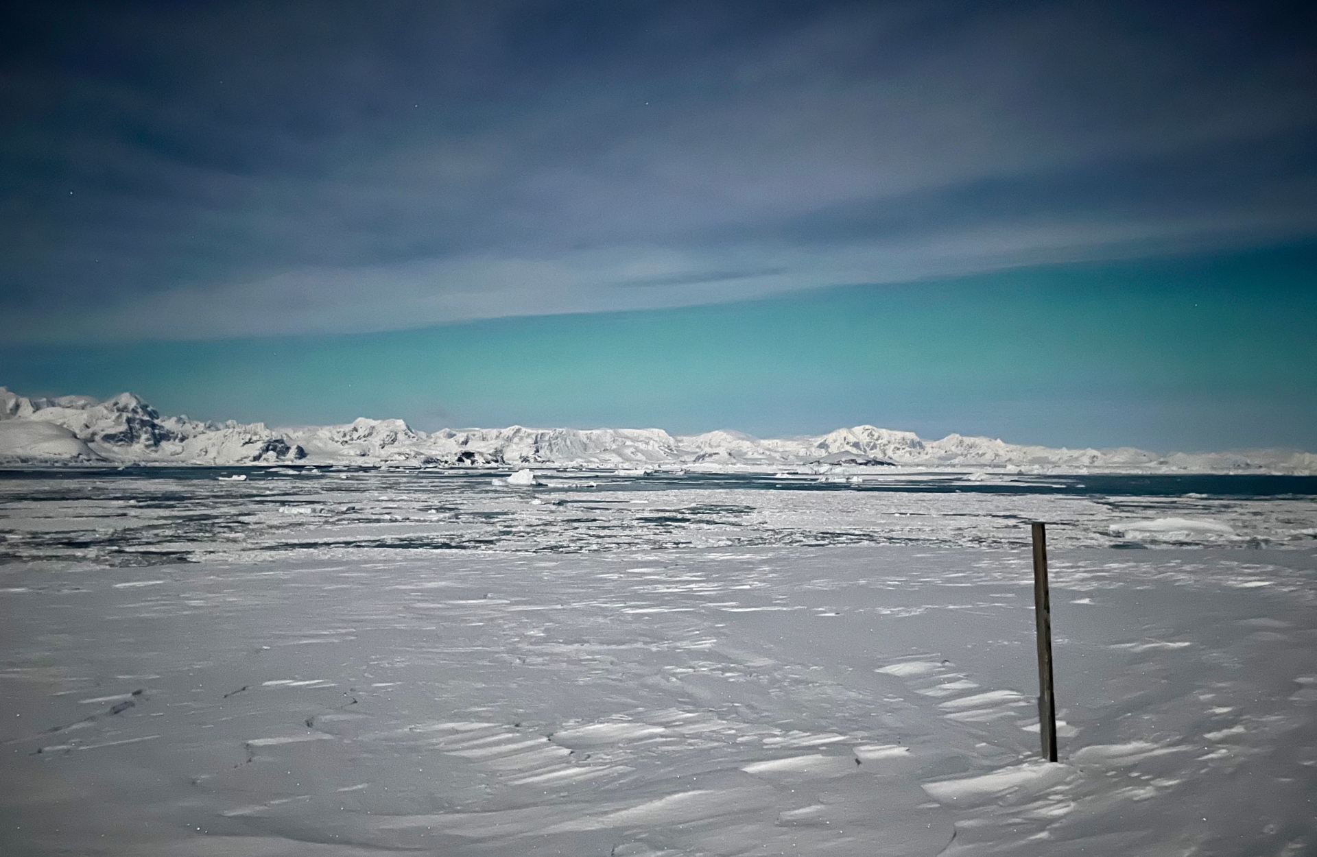 Тож наші полярники одразу вирушили на те місце, де їм вдалося зазнімкувати сяйво місяць тому. І хоч на небі були смуги тонких хмар, а повний місяць яскраво освічував простір, однак близько 15 хвилин дослідники спостерігали унікальне явище.
